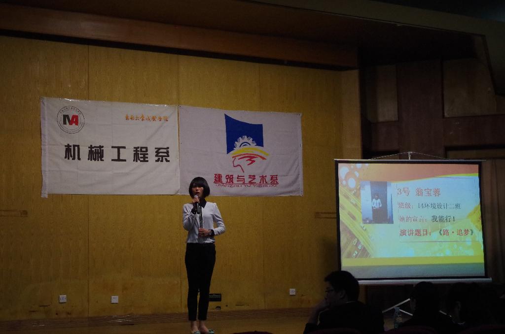 4月16日晚,系分团委关于学习习近平总书记 “四进四信”重要讲话的主题演讲比赛决赛在真知馆报告厅顺利举行,机械工程系综合办主任严红霞老师,机械工程建筑与艺术系分团委书记江晶老师,机械工程辅导员袁兴博老师,建筑与艺术系辅导员李敬老师担任决赛评委。 此次演讲比赛经过初选,共有8名同学进入了决赛。决赛中,各个选手精心准备,有的幽默诙谐,有的成熟稳重,有的激情昂扬,每个人都通过这次比赛展现了自己高超的口语表达能力和特色的人格魅力。经过第一轮自我展示和第二轮主题演讲的激烈比拼,来自14环艺2班的翁宝蓉同学凭借个人朴实而又动人的演讲《路•追梦》博得了评委老师和观众的心,获得了一等奖,其他分获二、三等奖。 翁宝蓉同学在展现精彩的演讲 评委老师们认真地欣赏比赛 机械工程系综合办主任严红霞老师与获一等奖选手合影 机械工程系袁兴博老师与获二等奖选手合影 建筑与艺术系辅导员李敬老师与获三等奖选手合影