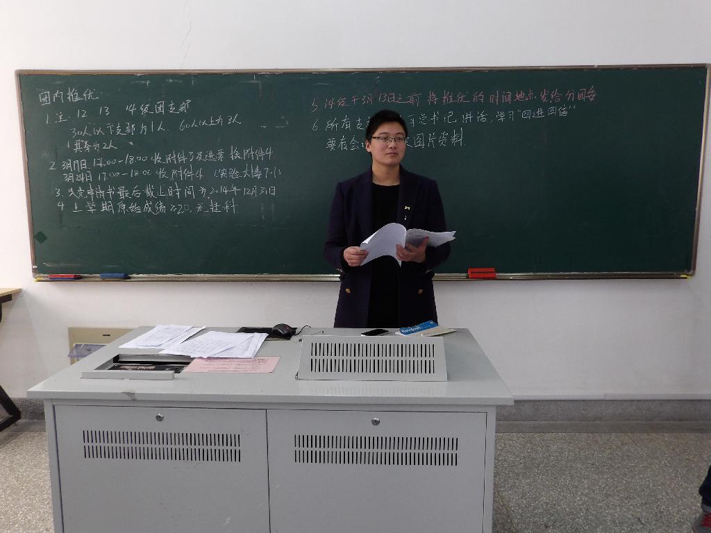此次会议以介绍“团内推优”活动并宣传习近平总书记“四进四信”重要讲话为主要内容。会议中副书记刘帆向大家传达了“团内推优”活动的重要意义,并指出“团内推优”活动对同学们的重要影响。会议中向各班团支书着重阐述了活动的举行日期和注意事项。最后,由副书记刘帆向各支部讲解并宣传了“四进四信”的重要精神。 |