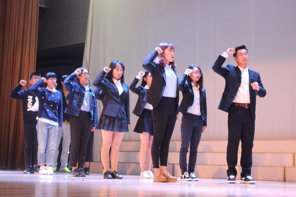 最后,江老师发表总结性讲话,在肯定了上一届分团委、员工会工作的同时,对新一届分团委、员工会成员的工作提出了三个要求:老生做好新生的引路工作,学会交流以及提升办事能力。