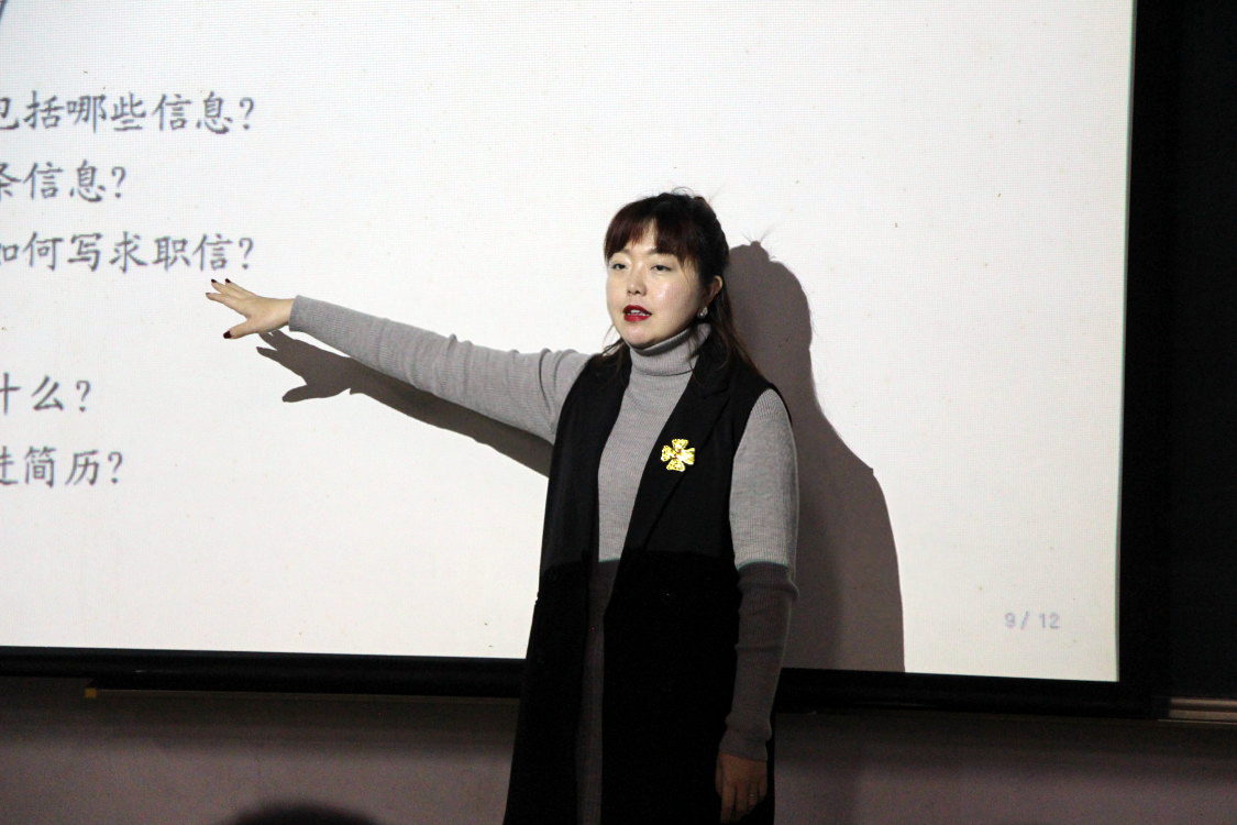 在本次动员会上,江老师用生动的语言向所有毕业班同学详细讲解就业形势及对往届就业成功的案例进行解析,江老师在就业工作方面经验丰富,早在2016年初即多次动员大四员工要早关注、多留意就业信息与岗位,并借助网络大数据分析,引导本届毕业生尽快找到自己的就业渠道。