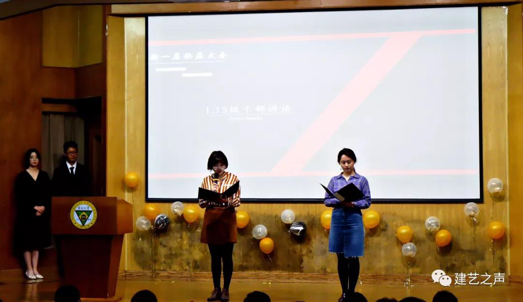 在江晶老师宣读完新一届分团委、员工会主要干部名单后,新老分团委副书记、主席进行了交接仪式,由新任分团委副书记姜梓芮代表新一届员工干部进行讲话。