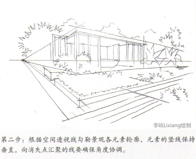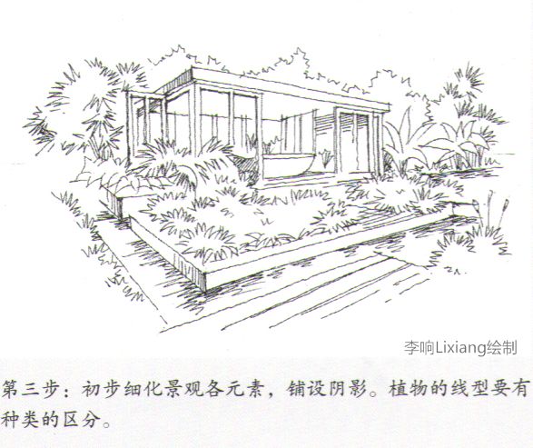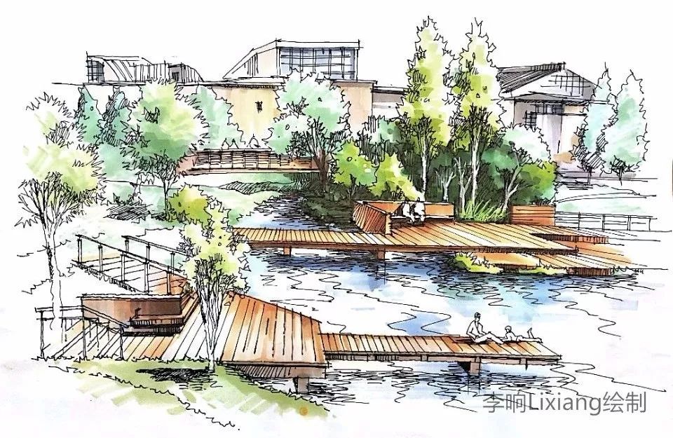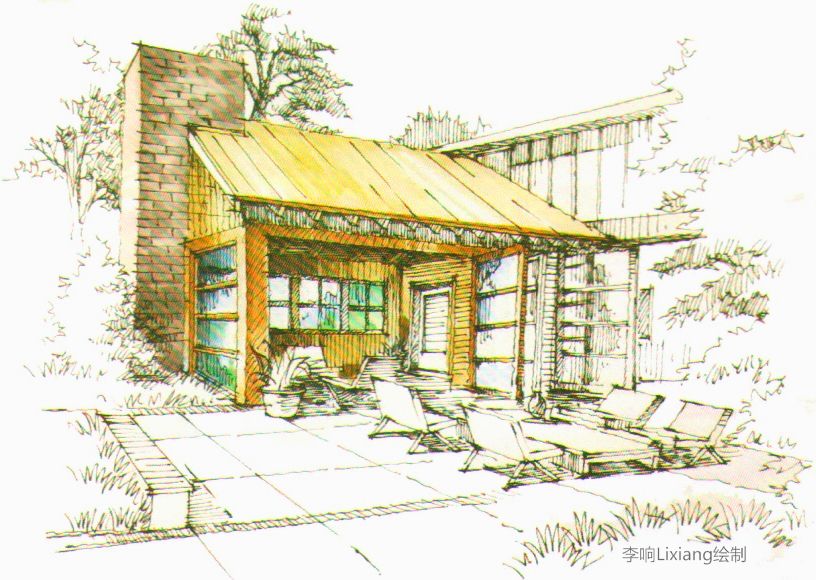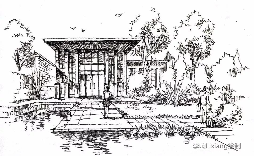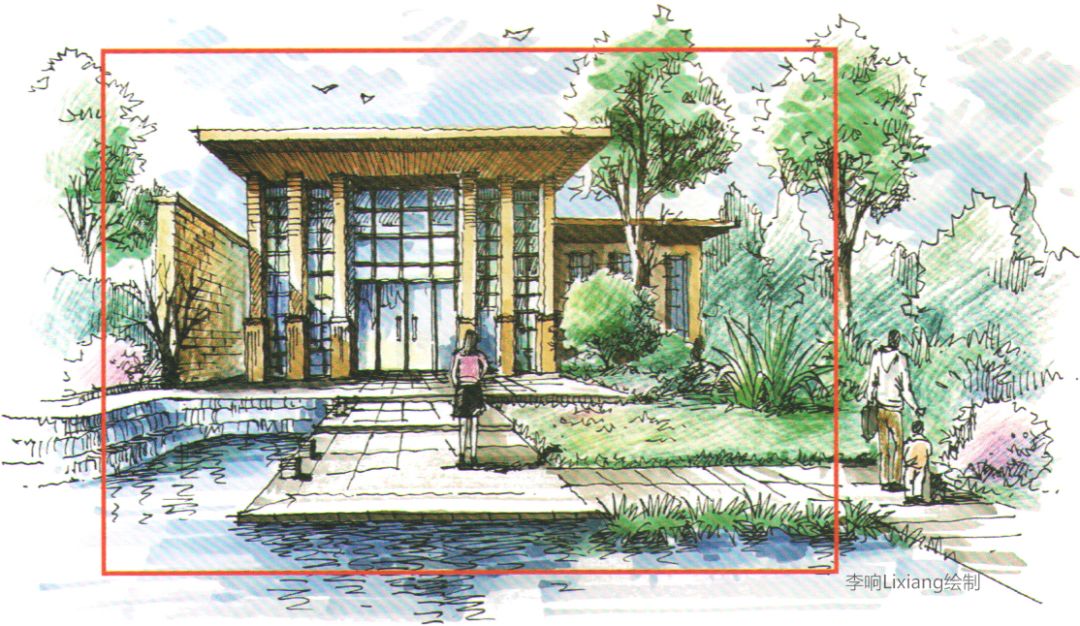 我们主张读者对于手绘表现的学习应是一个从整体到局部再到整体的过程,即对景观手绘表现图的作用与内容有一个整体的认知;在此基础上深入各个部分的学习与训练,如线条的绘制训练,各景观局部的绘制训练等;然后回到画面整体的构图与主次布局的掌握,以此达到把握画面绘制的整体感的目的。本教材在遵循这一规律的基础上编排各部分的内容,以合理逻辑帮助读者建构手绘表现图的认知与练习。
