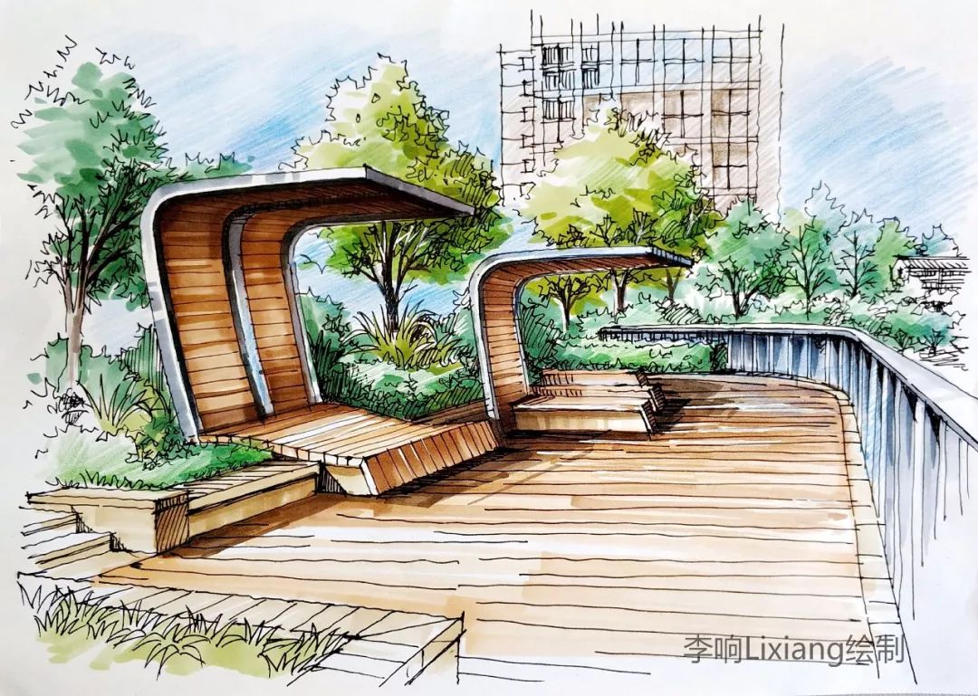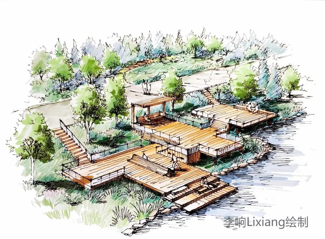 鉴于近些年,景观设计手绘表现类书籍的品类较多,其内容多是围绕马克笔表现技法而展开,这类书籍对于在校员工短期内提高景观手绘表现具有一定的参考意义,但是并不能从根本上解决手绘表现“为何而表现”的问题,这是景观手绘表现的基本问题,也是最重要的问题。一幅优秀的景观手绘表现图,其中的技法是必须的,而具备扎实的综合理论知识并能够结合图面进行灵活运用才是绘者能把控整体图面效果的重要基础。因此,我与王桉、李响等一起编撰了《景观设计手绘表现》教材。