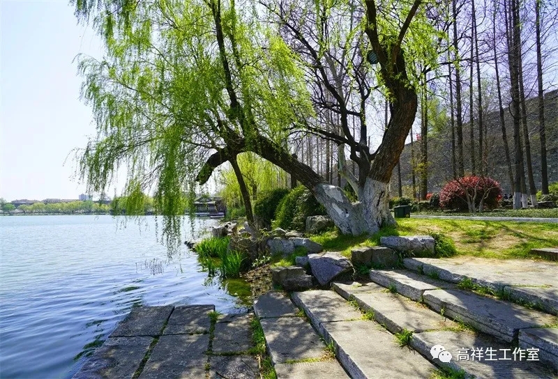 池边的太湖石增添了几分江南园林气息。紧邻城墙处,湖滩上已有高耸挺拔的水杉冒出新芽,嫩绿的,星星点点。春天水杉树既有一种刚毅向上的气质,又有一种自律和内向的性格,这种树的特性多像南京人的性格。