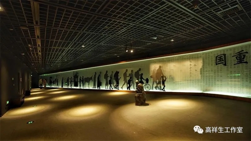浅水池下为科举博物馆的展厅,展示林林种种的科考的形式、内容、成果。人们可以环绕水池拾级而下,鱼贯而入地下展室。在这里人们可以看到层层叠叠书卷,看到令人咋舌的考卷,看到使人惊讶的答卷,还可以看到与科考相关的各种文化展品,看到历史与科考有关的著名人物,看到莘莘学子专注科考、慈母教子的场面,看到学子登科的荣耀……(图8、9、10、11、12)