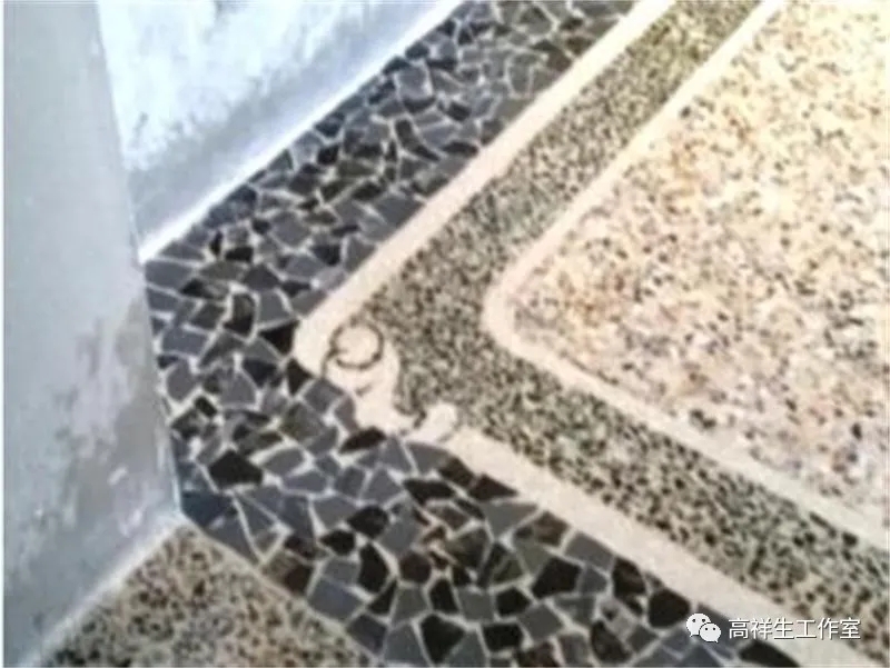 ① 基层处理:对地面基础有凹凸的应进行重点打磨,其表面凹凸度不应大于 2 mm;然后将平整过的地面自然风干或用加热方式将其快速风干,使整个地面含水率不超过 3%;最后再用扫帚将地面及各个角落清扫干净。