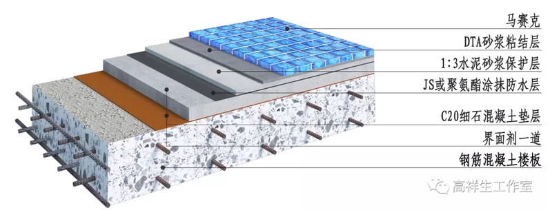 图 12-2-11 马赛克地面构造节点图(砂浆粘接层)