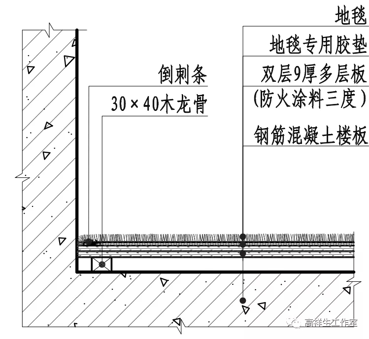 图 12-5-4 木龙骨基层地毯地面构造节点图