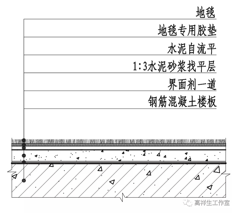 图 12-5-3 混凝土基层地毯地面构造节点图