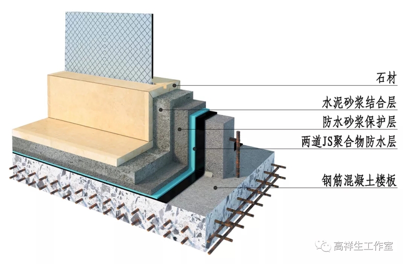 图 12-10-59 卫生间淋浴隔断石材挡水槛地面(一)构造节点图