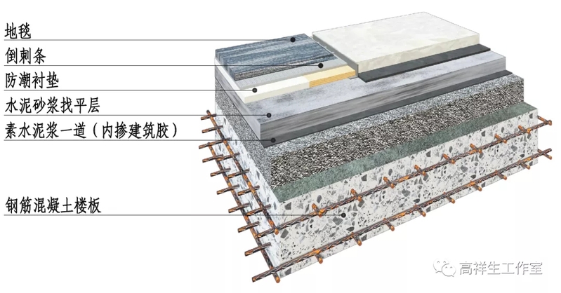 图 12-11-16 混凝土楼梯地毯地面构造节点图