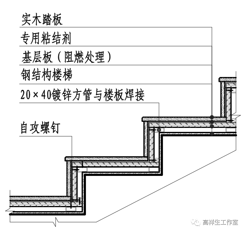 图 12-11-15 钢结构楼梯实木地面构造节点图