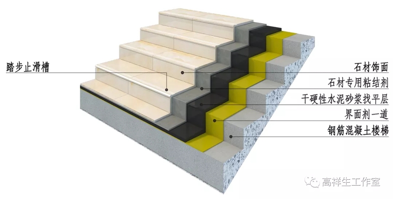 图 12-11-4 钢结构楼梯石材地面构造节点图