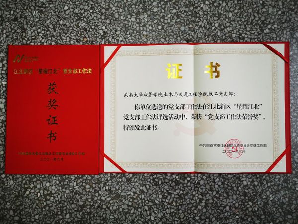 为深化党建强基系列行动,真正把党建基因融入江北新区发展血脉,进一步发挥基层党组织战斗堡垒作用和党员先锋模范作用,公司推选的球王会第二党支部“艺心益意·三二一”工作法和土木与交通工程公司教工党支部“四个牢记”工作法在江北新区此次“星耀江北”党支部工作法评选活动中双双获奖。