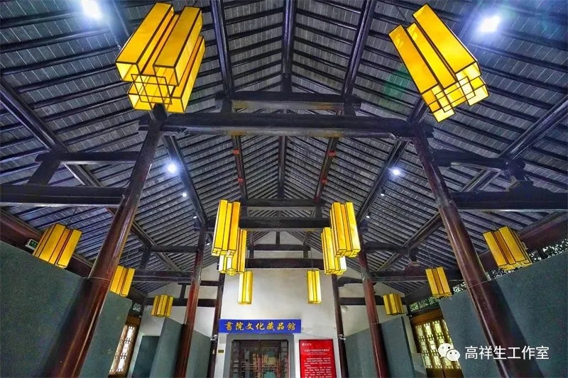 书院的一殿和二殿间以曲廊相连,自一殿的两侧经过曲廊进入二殿。廊道大多为方形或长方形的花窗,简洁大方,透过廊道的玻璃窗可以欣赏园中香花草木。