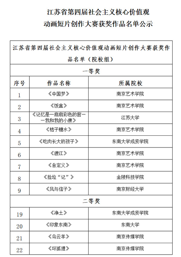 为深入学习宣传贯彻习近平新时代中国特色社会主义思想,大力弘扬社会主义核心价值观,加强院校课程思政建设,推出一批短小精悍、思想精深、艺术精湛、制作精良的优秀动画作品,江苏省广播电视局、江苏省教育厅特联合举办江苏省第四届“社会主义核心价值观动画短片创作大赛”。