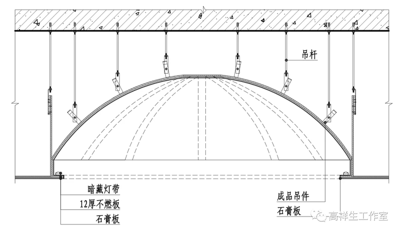 顶棚装饰构造要根据功能要求、外观形式、饰面材料等选择。