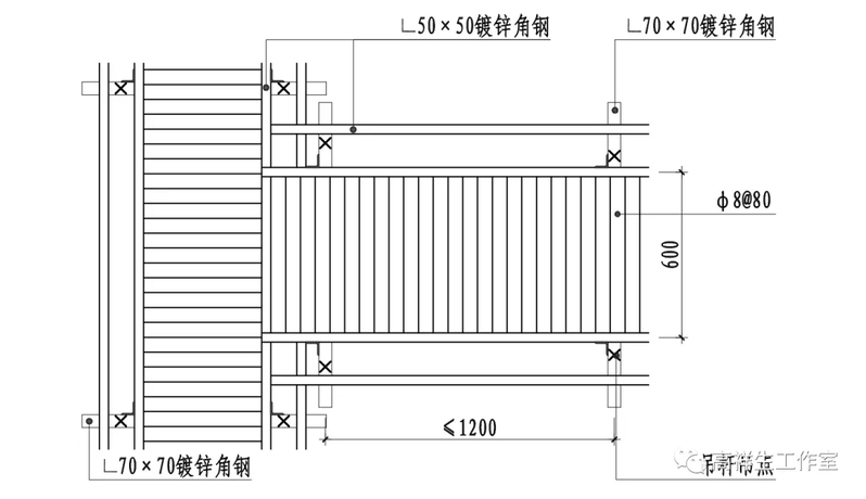 图 13-1-36 角钢马道顶棚构造节点图(一)