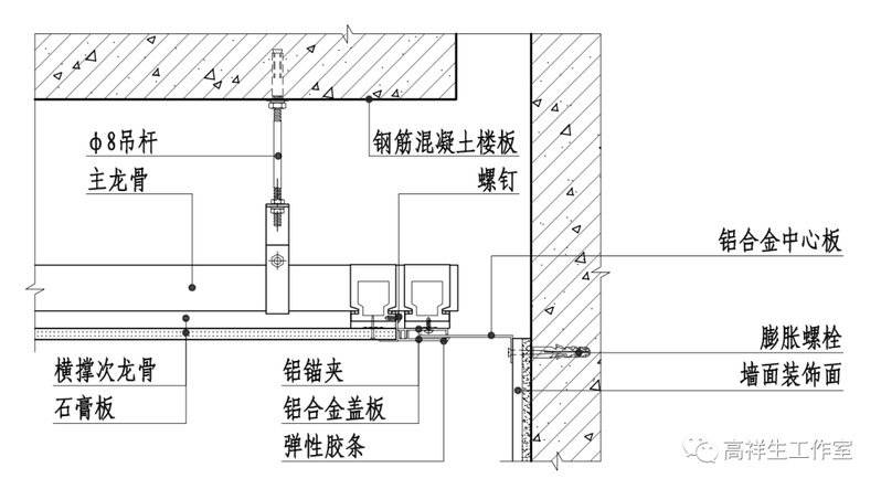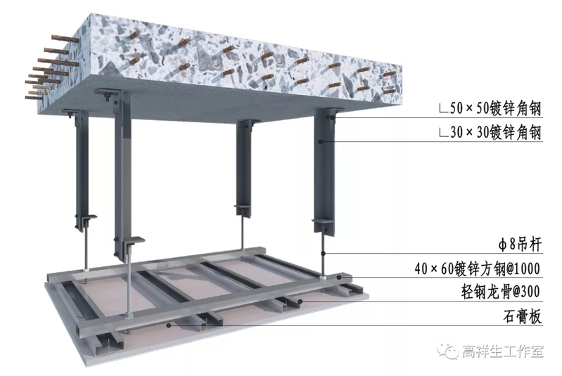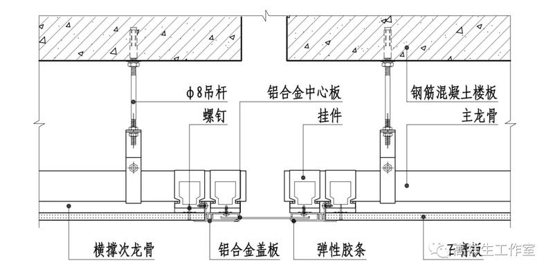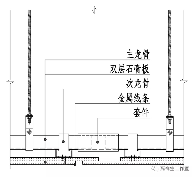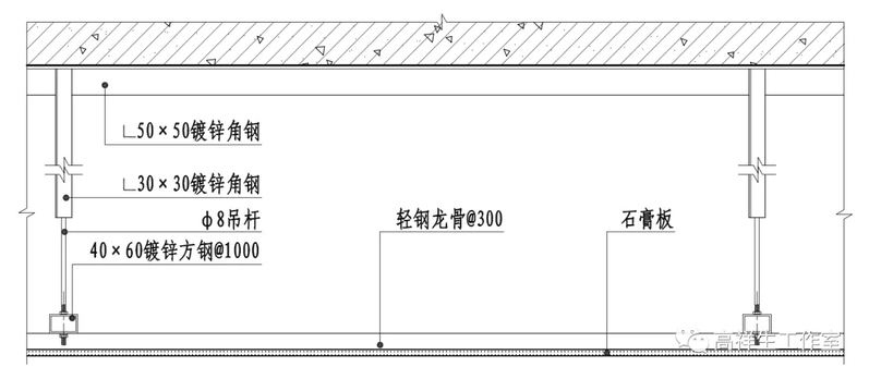 图 13-1-15 扁钢龙骨顶棚构造节点图