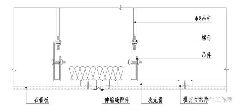图 13-1-56 单层石膏板顶棚伸缩缝构造节点图