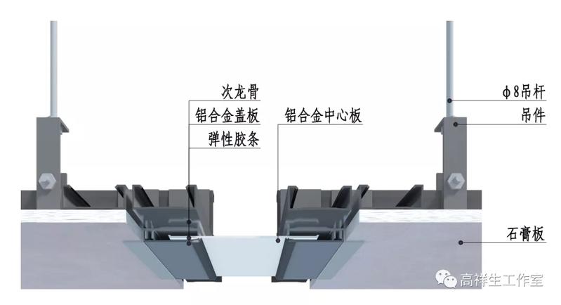 图 13-1-52 双层石膏板顶棚伸缩缝三维图