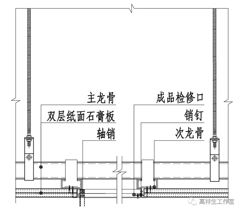 图 13-1-53 双层石膏板顶棚伸缩缝构造节点图