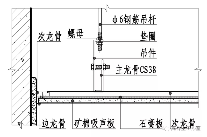 图 13-2-28 复合粘贴矿棉板顶棚构造节点图(二)