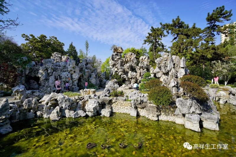 华灯初上,我们离开多姿多彩的莫愁湖公园,回头瞻仰公园入口处成片的湖石,高低错落,天然成趣,在绿荫的簇拥下尽显雄浑而包容的气息。