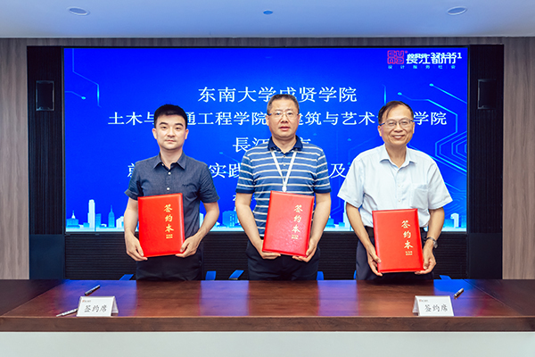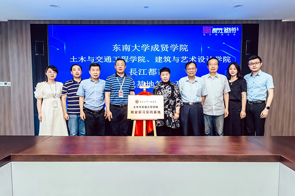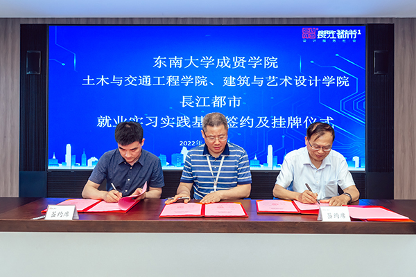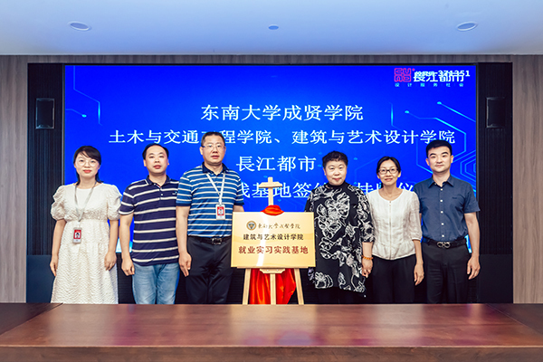 人力资源部经理刘友存则向与会领导、老师介绍了从2013年起入职长江都市的19位成贤员工的职业发展情况,他们在结构设计、建筑设计、室内设计、环境设计等多个岗位,展现了成贤学子扎实的专业功底和良好的综合素质,为企业的快速发展贡献了自己的青春智慧。科研技术管理部经理韦佳以《坚持“双创”战略驱动持续发展——长江都市设计创优与科技创新》为主题,介绍了长江都市从传统的设计企业向工程设计与科技创新相集合的科技企业的转型之路,介绍了企业近年来在绿色建筑与装配式建筑、办公建筑的创新应用、科研课题与技术研究等方面所取得的成果。随后土木与交通工程公司经理郭正兴、公司党总支副书记邵叶鑫,分别代表两个公司与南京长江都市建筑设计股份有限公司总经理董文俊签订了《就业实习实践基地协议书》并挂牌“球王会官网就业实习实践基地”。