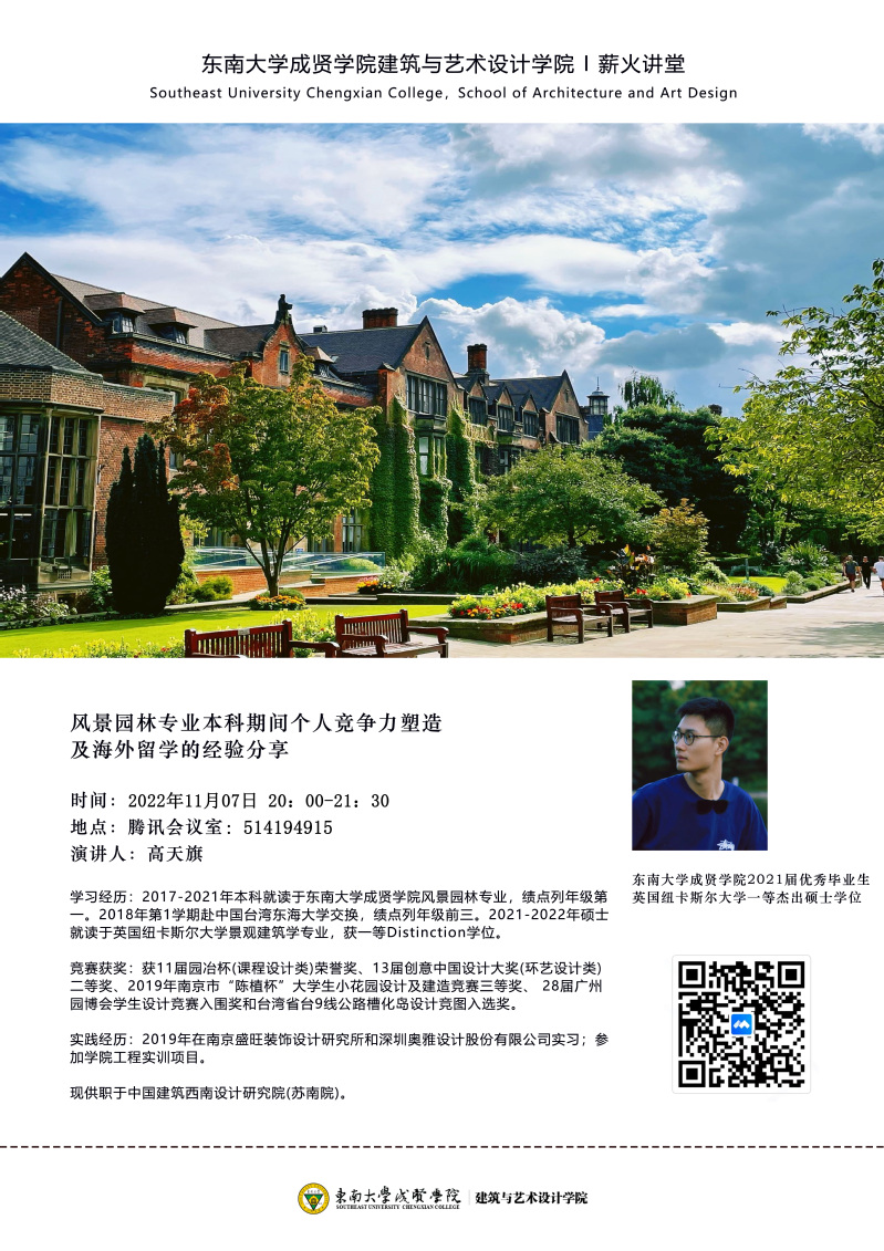 球王会薪火讲堂系列讲座之一:风景园林专业本科期间个人竞争力塑造及海外留学的经验分享