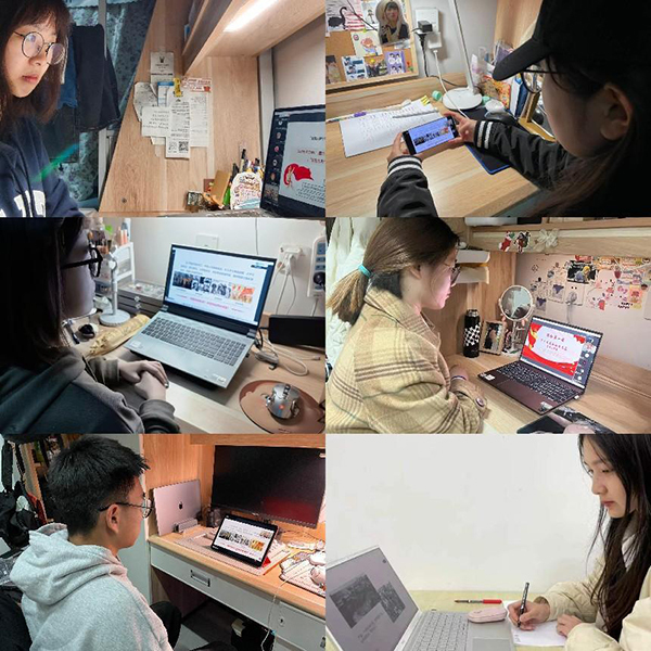 建艺院员工通过各种方式收看学习