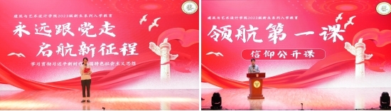 开场舞蹈《旗开得胜》表达了建艺学子将用豪迈的姿态迎接美好的老员工活。随后的《戎装上阵,启航新程》视频回顾了新生报到与军训,将大家拉回入学后的点滴。意犹未尽中又进入“梦的心声”公司寄语环节,全体新生开启事先放在座位上的信封,阅读来自公司老师和2023届毕业生的手写祝福卡片。21级风景园林1班进行了班级风采展示,他们将活力团支部的凝聚力和集体荣誉感埋进每一位新生的心中。21级员工干部代表表演了诗朗诵《少年中国说》,铿锵有力、慷慨激昂的语句萦绕在每一位新生的耳边。