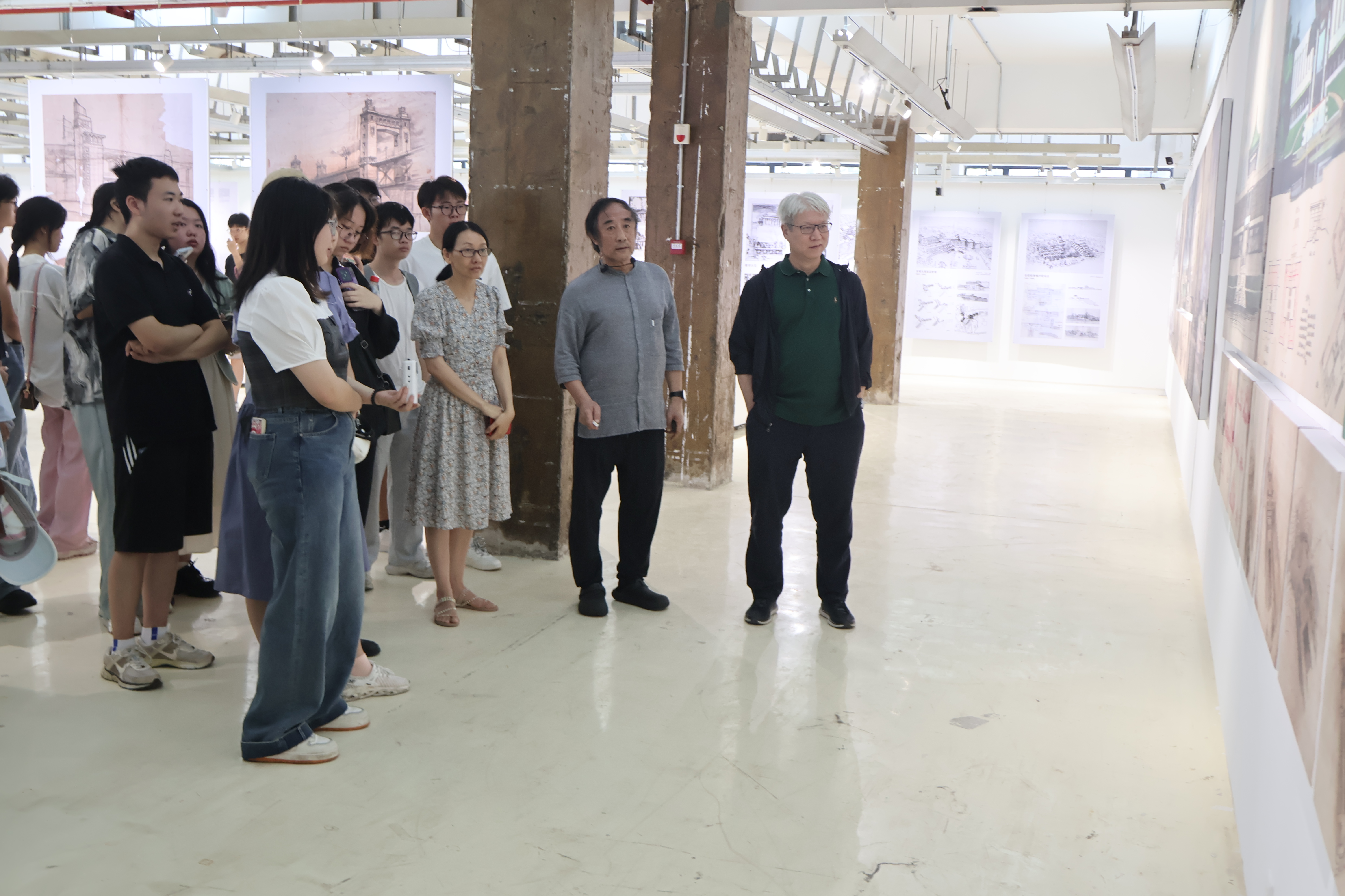 活动特别邀请了东南大学建筑公司单踊教授为师生们做讲解,单老师一一解读成果展上钟先生的设计和绘画作品,结合南京长江大桥桥头堡、无锡太湖饭店、福建武夷山九曲花街规划等几十项建筑实际工程,讲述钟训正先生的创作历程,让参观的全体师生深入体会其“顺其自然,不落窠臼”的建筑创作思想。在参观学习过程中,单教授还就同学们现场提出的专业问题进行详细地解答,帮助同学们对专业有了更深地了解。此次展览生动呈现了钟先生在建筑、学术和教育领域的卓越成就,对于弘扬其治学态度、教育理念和学术思想具有十分重要的现实意义。