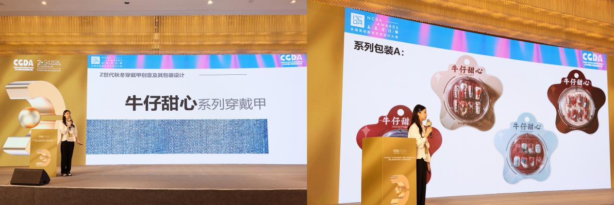 近日,202412届未来设计师•全国高校数字艺术设计大赛(NCDA)大赛落下帷幕。球王会员工作品在本次大赛中获得多项国家级、省级奖项,再创该项赛事获奖数量和质量历史新高。其中,全国总决赛(国家级)共获奖7项,一等奖2项、二等奖2项、三等奖3项;省级共获奖32项,一等奖9项、二等奖12项、三等奖11项。此外,国赛一等奖作品《牛仔甜心系列穿戴甲》(作者章晓瑞、张烨泽;指导老师陈晓青、王娟芬)在现场答辩从创新创业赛道5494件作品脱颖而出该赛道作为国内创意设计落地样板赛事,参赛者需经历省级初选、赛区初轮答辩、设计对接工厂打样、全国路演答辩多个阶段,从设计全流程考察员工的设计综合能力。